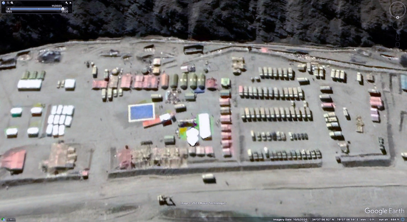 - Google Earth/Maxar Technologies image, 1/29/2021, at 33 44 59N 78 52 06E. Return to text.