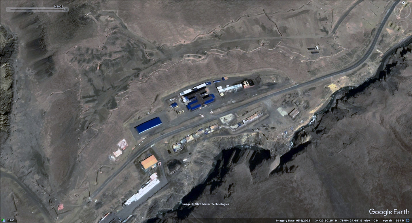 - Google Earth/Maxar Technologies image, 6/14/2020, at 33 43 15N 78 45 49E. Return to text.