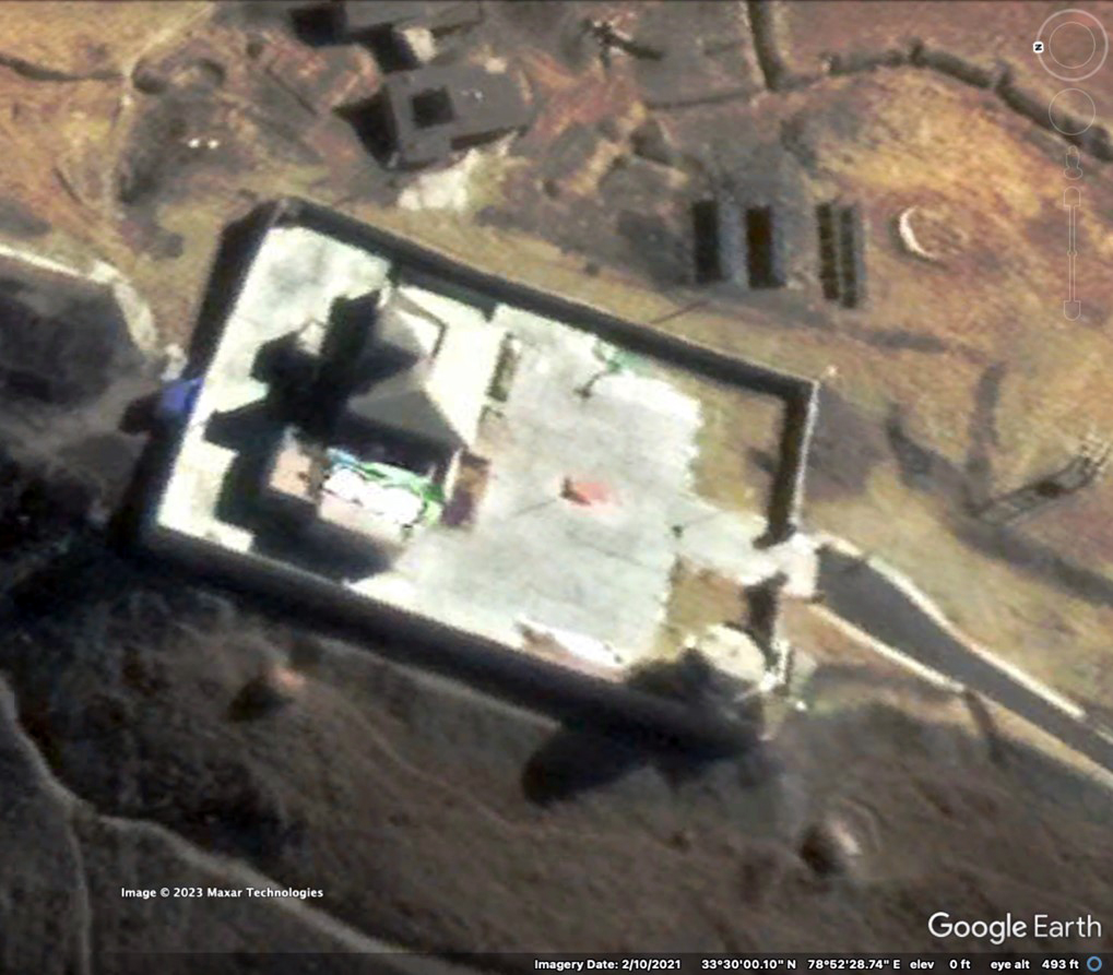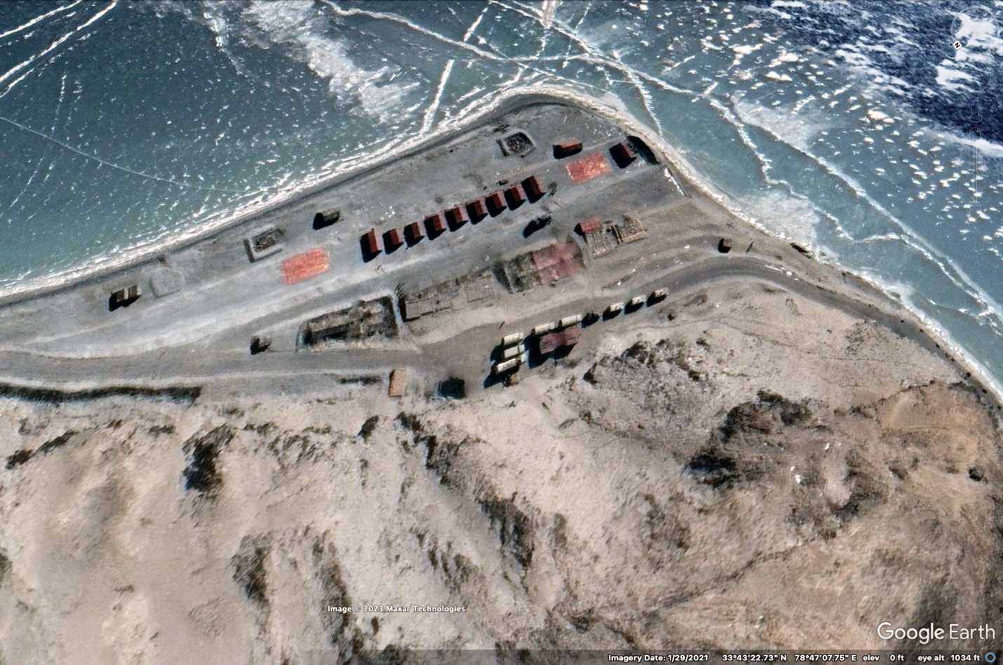 - Google Earth/Maxar Technologies, image 1/29/2021, from 33 43 38N 78 47 34E to 33 44 31N 78 48 14E. Return to text.