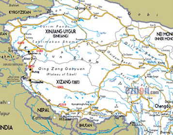 To the east of the Aksai Chin, the closest railhead in Tibet is at Xigazê, about 860 miles by G219 to Rutog at the eastern end of the Pangong Lake. Railheads in Lhasa are over 1,000 miles by road to Rutog. In addition to G219, a second road, S301, starts north of Lhasa and connects to Shiquanhe through the center of Tibet some 100 to 200 miles north of G219. Overland logistics support to Lhasa must travel nearly 1,200 miles from Xining, over 700 miles by road from Golmud, and over 1,200 miles from Chengdu. The most direct route from Xining to Hotan is about 1,500 miles.