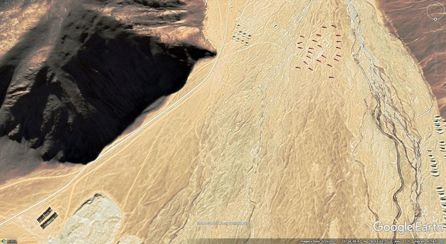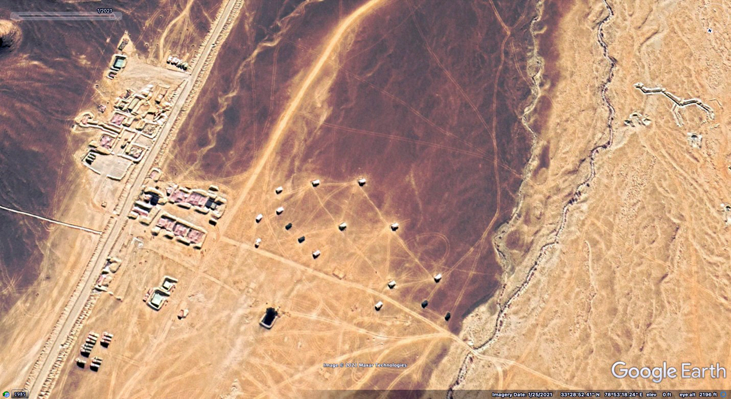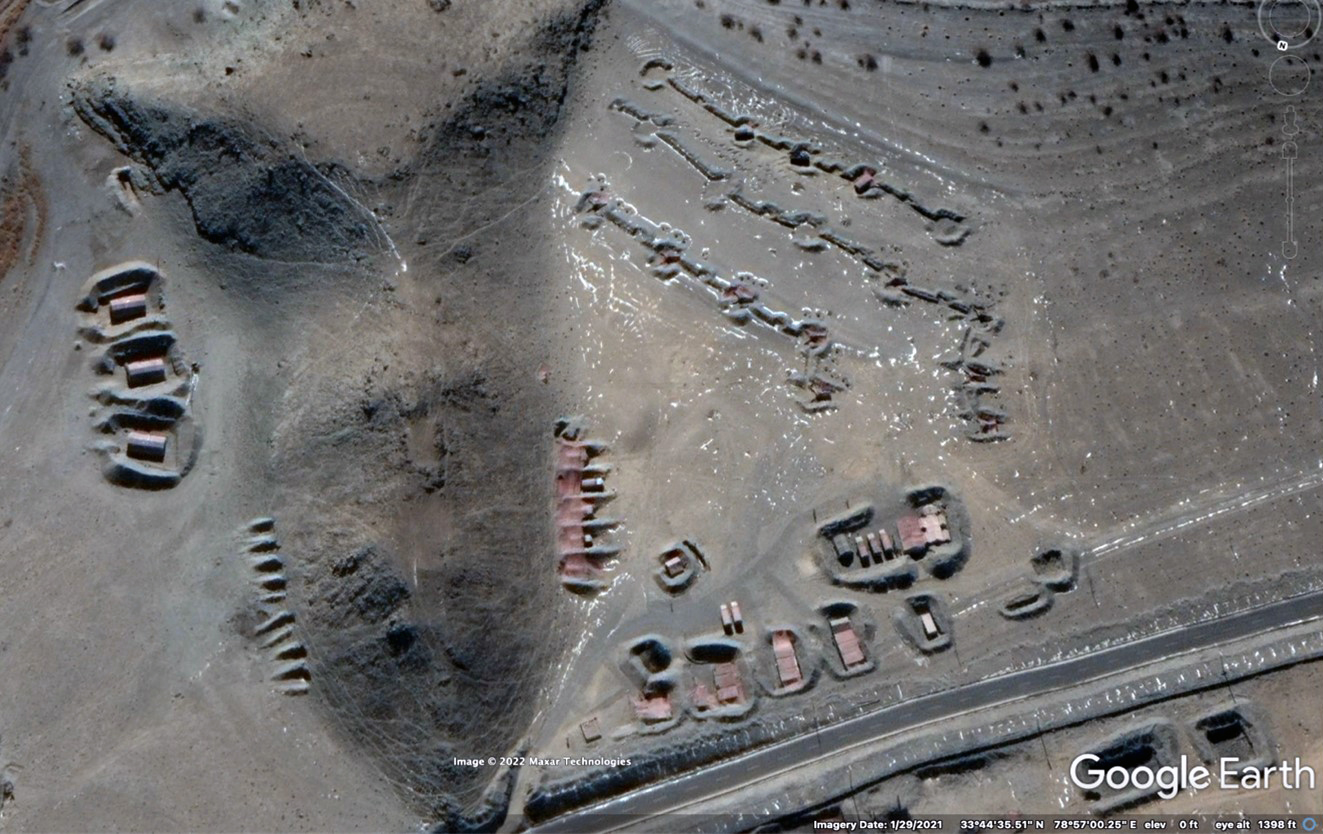 - Google Earth/Maxar Technologies image, 1/29/2021, at 33 44 31N 78 53 50E. Return to text.