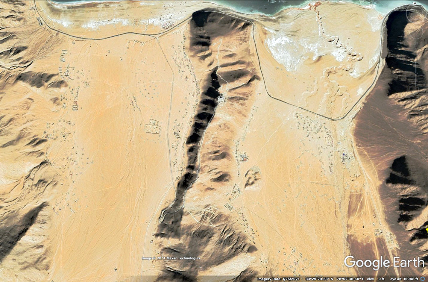 - Google Earth/Maxar Technologies image, 2/10/2021, at 33 33 59N 78 47 30E. Return to text.
