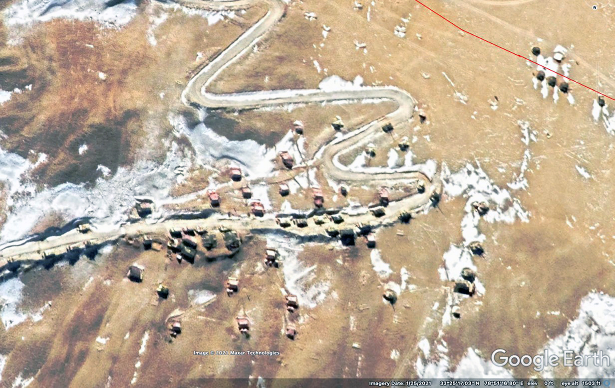 - Google Earth/Maxar Technologies image, 1/25/2021, at 33 30 24N 78 57 05E. Return to text.
