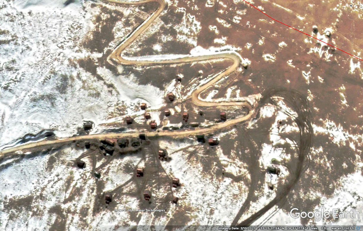- Google Earth/Maxar Technologies image, 2/10/2021, at 33 30 16N 78 51 54E. Return to text.